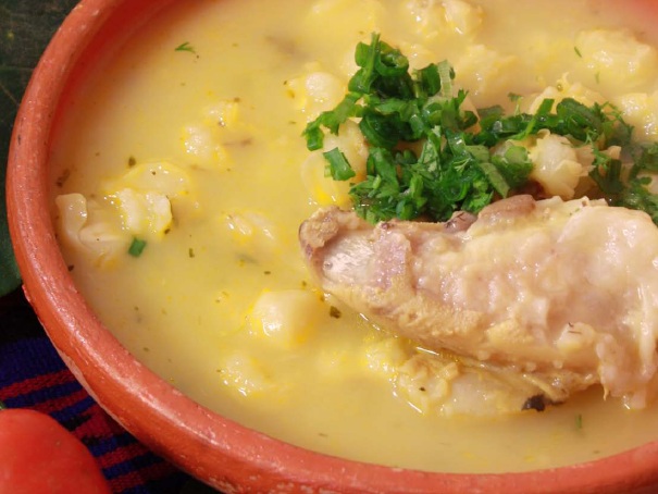 En una olla grande se hace el refrito con dos cebollas picadas, las dos mantecas, comino, pimienta y sal, se agrega el mote bien cocinado, se mezcla con el refrito y los caldos de la carne y de la cuchicara, se mueve constantemente hasta que espese.